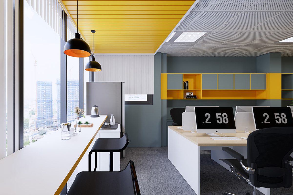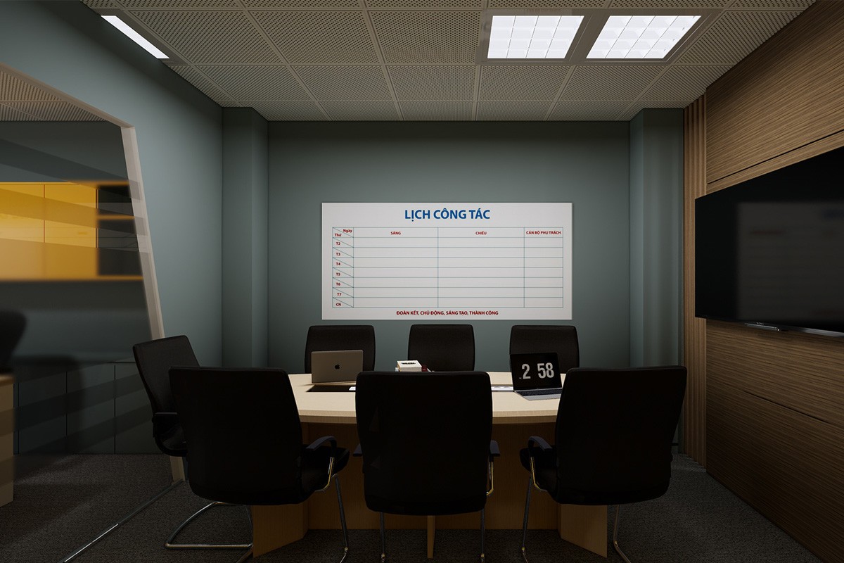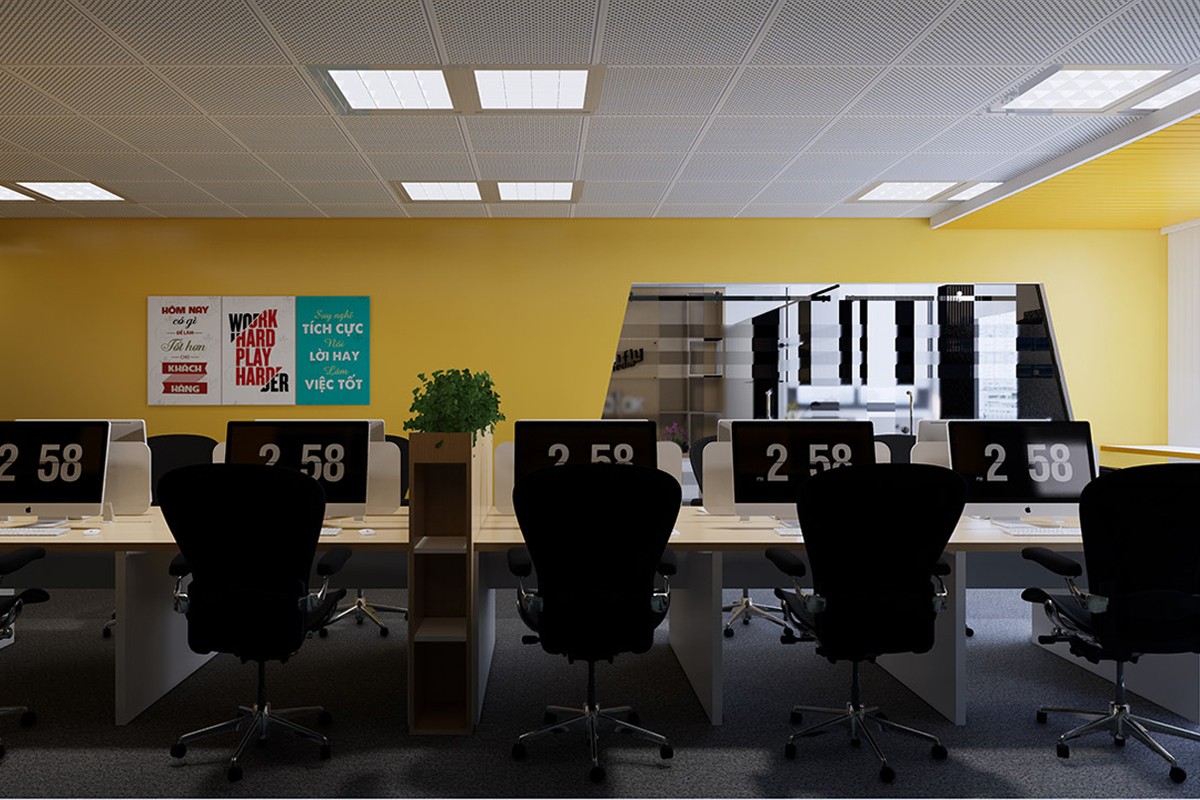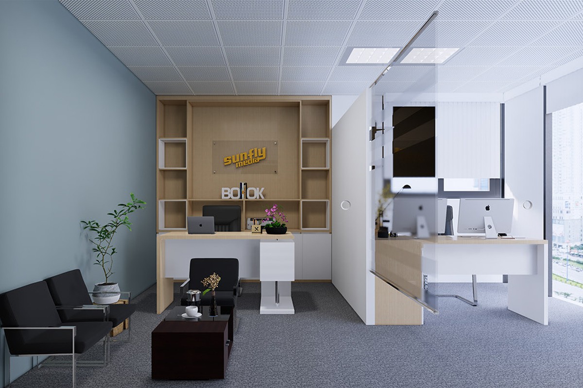 Designing the interior of Sunfly Media company office in a modern style. Interior design of office with white yellow tone as the main. Combining with the current advanced, standard equipment to create a new, modern workspace. Largely using the wooden furnitures to bring friendliness and luxury to the office.