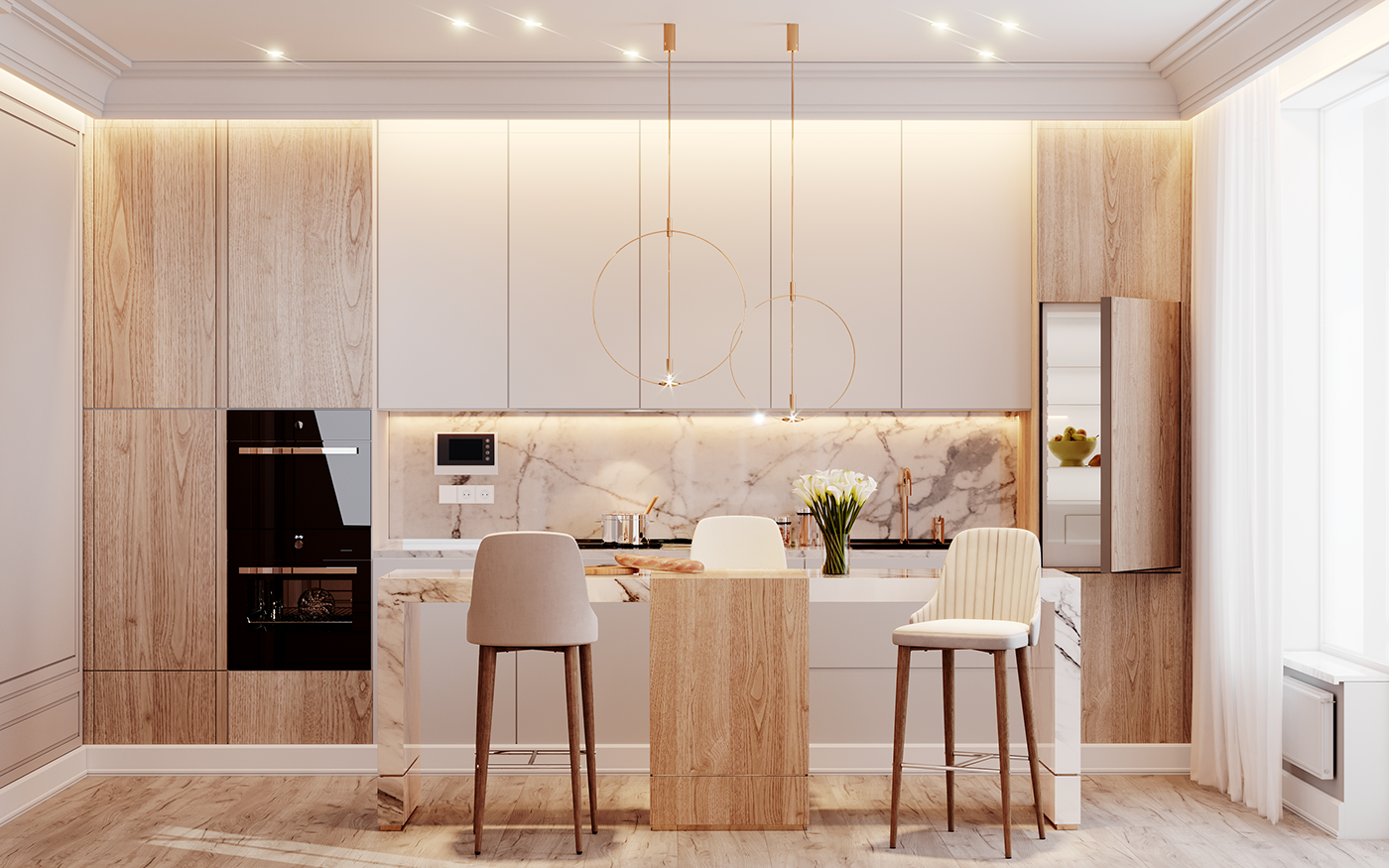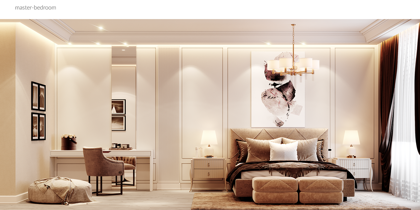 (Những gam màu ấm là sự bổ trợ tốt nhất để phong cách thiết kế tân cổ điển toát lên sự sang trọng, quý phái)