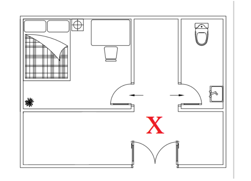(Không nên thiết kế cửa phòng ngủ đối diện nhà vệ sinh)