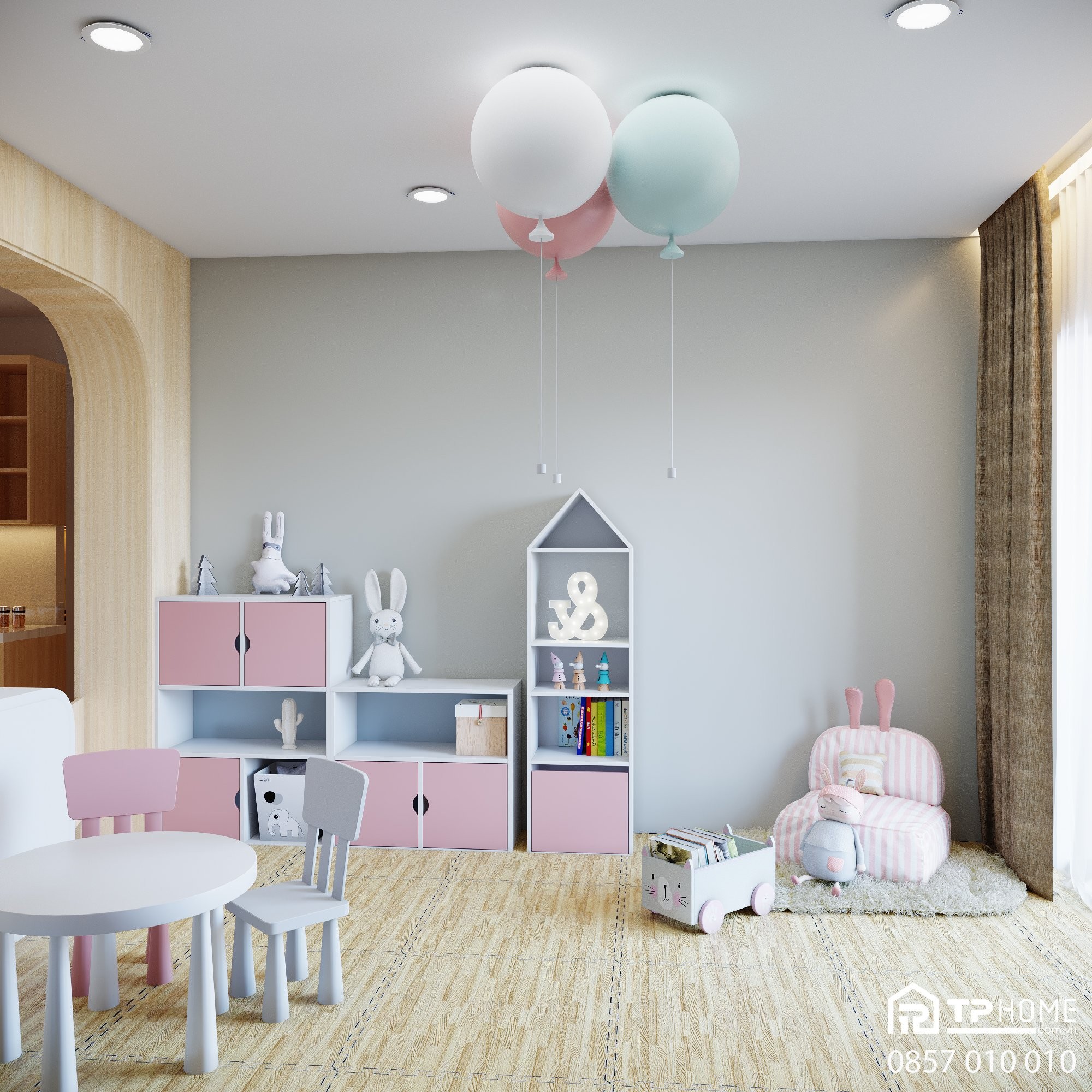 Mô tả: Tư vấn thiết kế và thi công nội thất trọn gói căn hộ 2 phòng ngủ theo phong cách hiện đại, thay đổi công năng phòng khách thành khu vực cho trẻ tại dự án Lovera Vista, Bình Chánh
