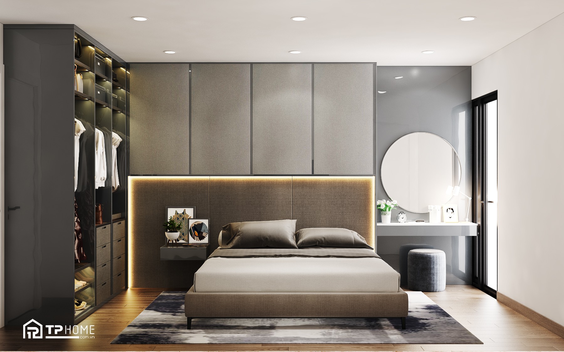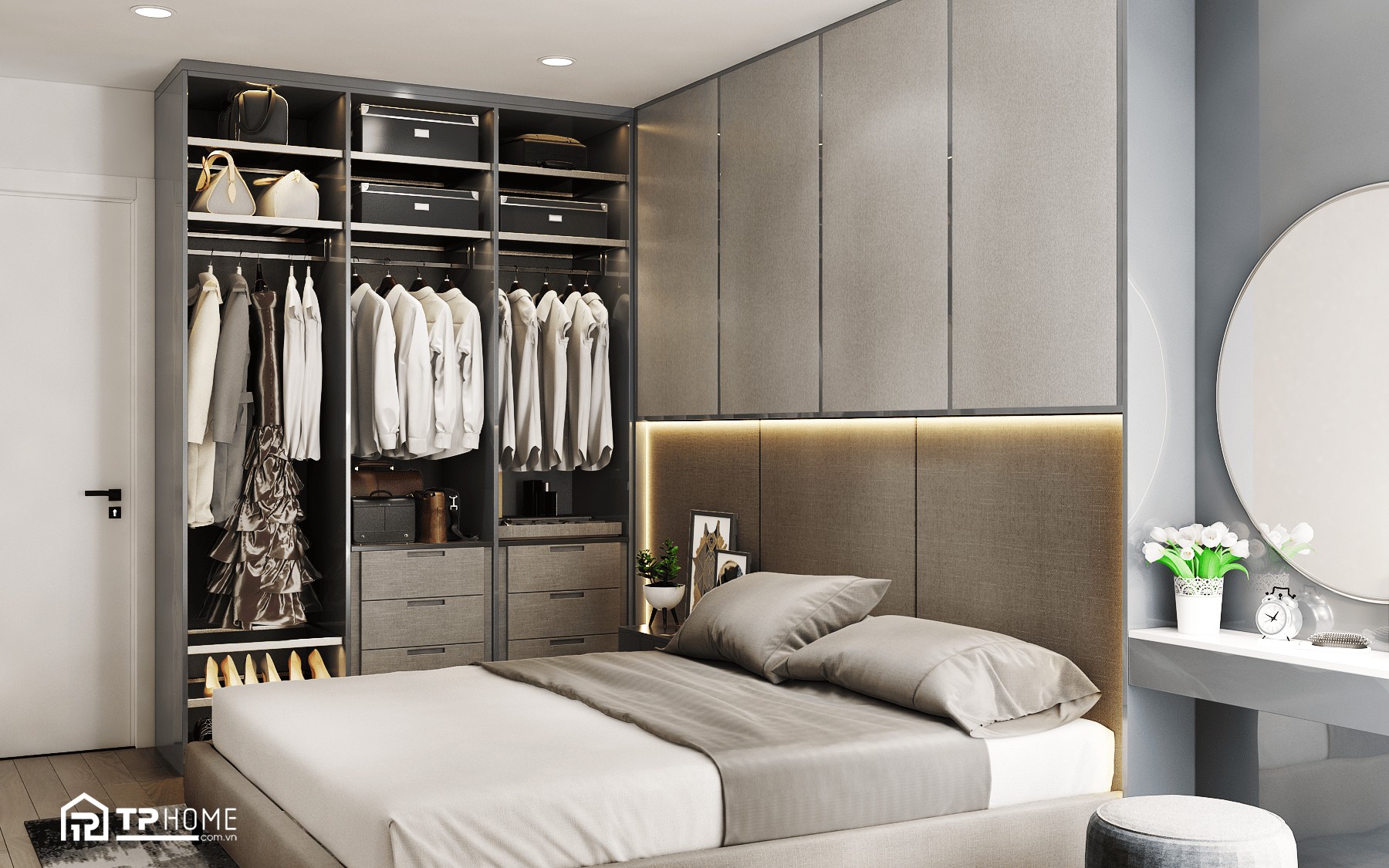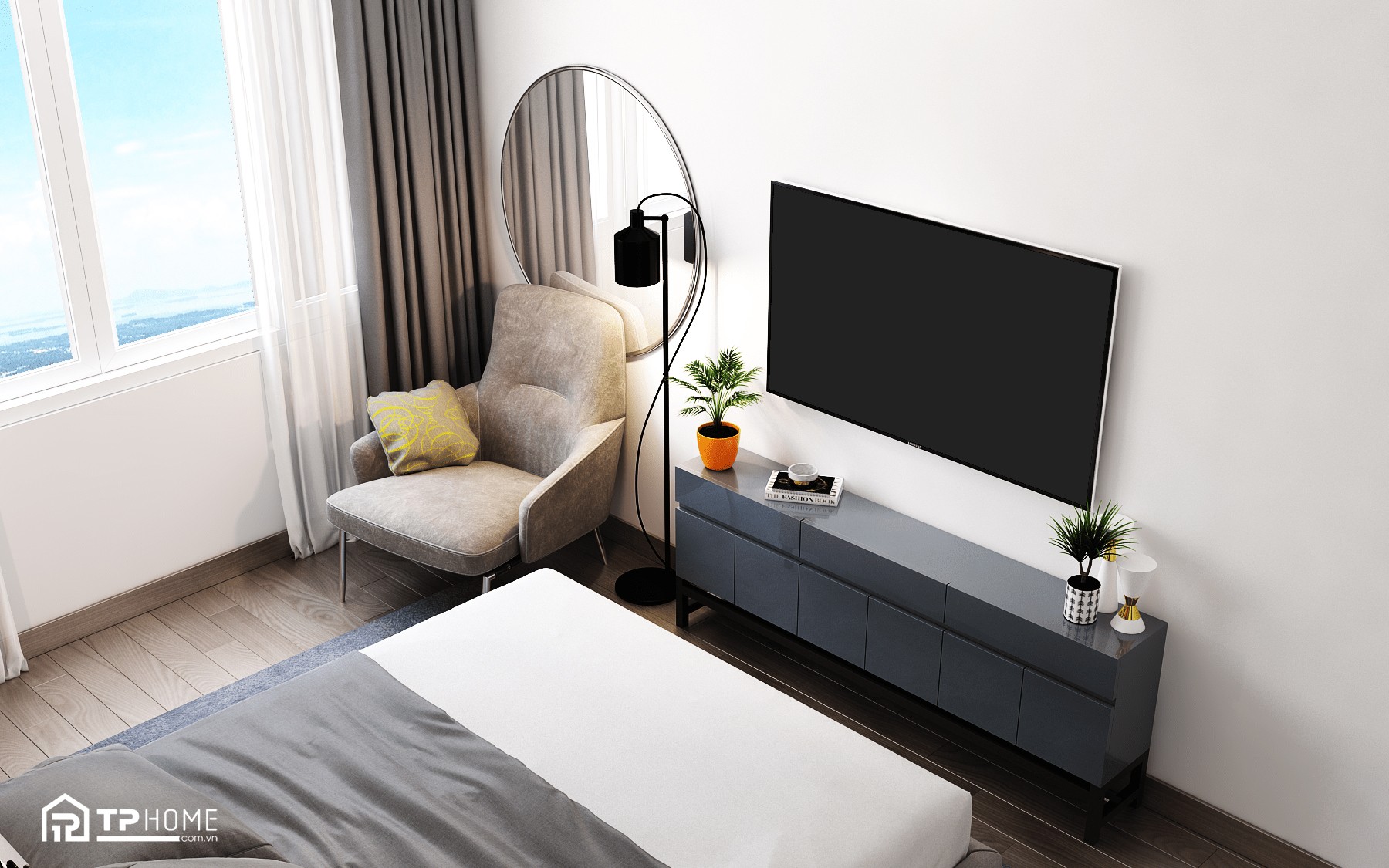 TPhome tư vấn thiết kế & thi công nội thất Căn hộ 1PN+ Vinhomes Grand Park, Quận 9 theo phong cách Hiện đại, Nâng cấp từ 1PN+ thành 2PN với thiết kế giường ngủ thông minh gấp gọn