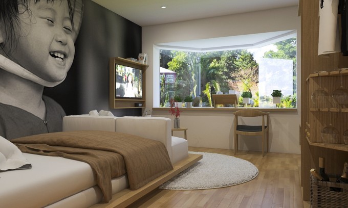 (Sử dụng vách gỗ để phân chia phòng ngủ với các phòng khác)
