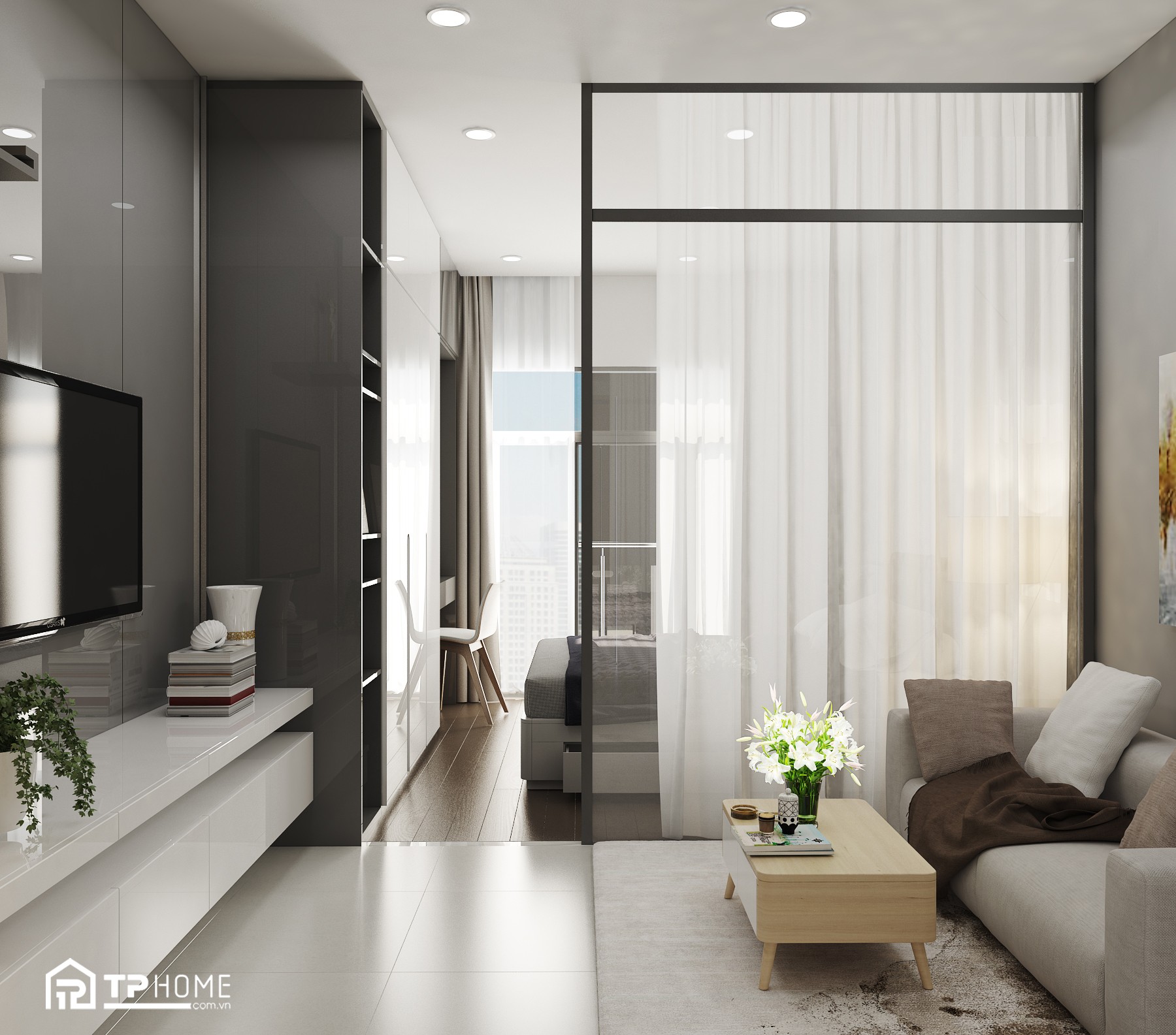 Quý khách có thể tham khảo bố trí nội thất căn hộ STUDIO phong cách hiện đại do TPhome thực hiện dưới đây.
