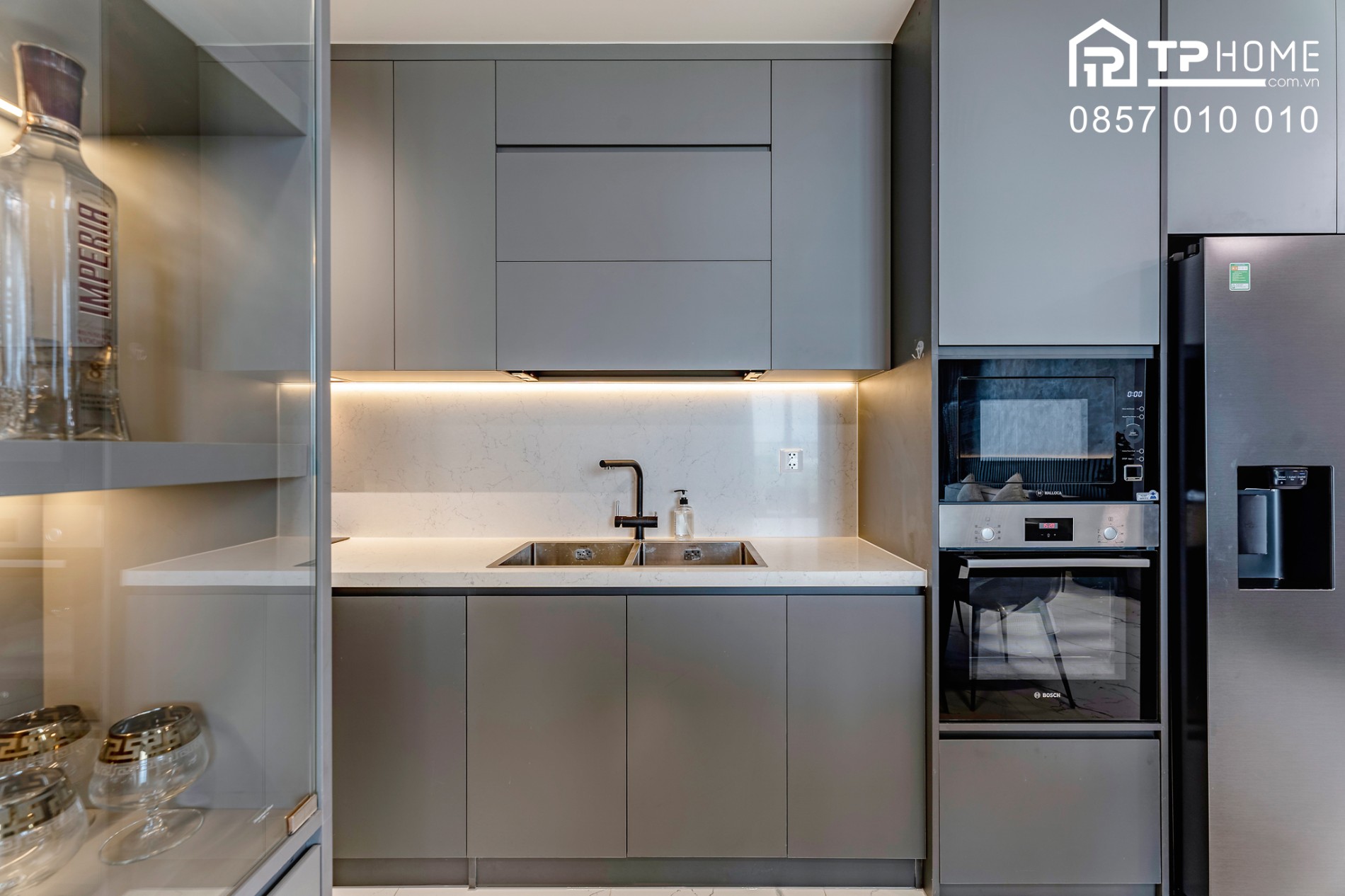 Vì là người kỹ lưỡng và tinh tế, mọi yếu tố tiểu tiết của căn hộ đều được chủ nhà yêu cầu sự chỉn chu. Do vậy, công trình Tphome thi công thuyết phục làm hài lòng khách hàng từ những yếu tố chi tiết, đó là: Hệ thống dây điện ti vi dòng tranh led đi âm tường đảm bảo yếu tố thẩm mỹ; Bộ ghế sofa phòng khách êm ái với bề mặt độn lông vũ tiêu chuẩn xuất Châu Âu; Giường ngủ bọc vải Ý với đường may sắc nét, được cân chỉnh từng cm để tối ưu hóa không gian phòng ngủ; Hệ thống tủ bếp với phụ kiện và thiết bị bếp bố trí hài hòa tiện nghi đảm bảo cho khách hàng thuận tiện trong quá trình sử dụng…