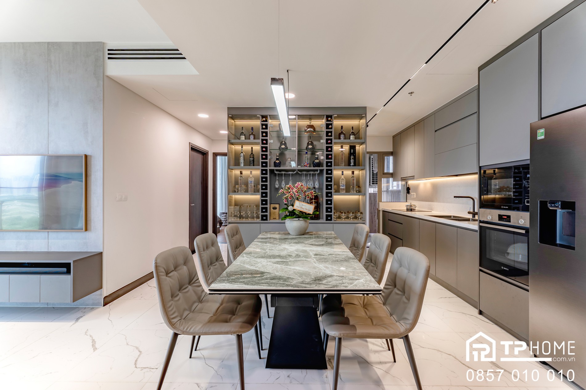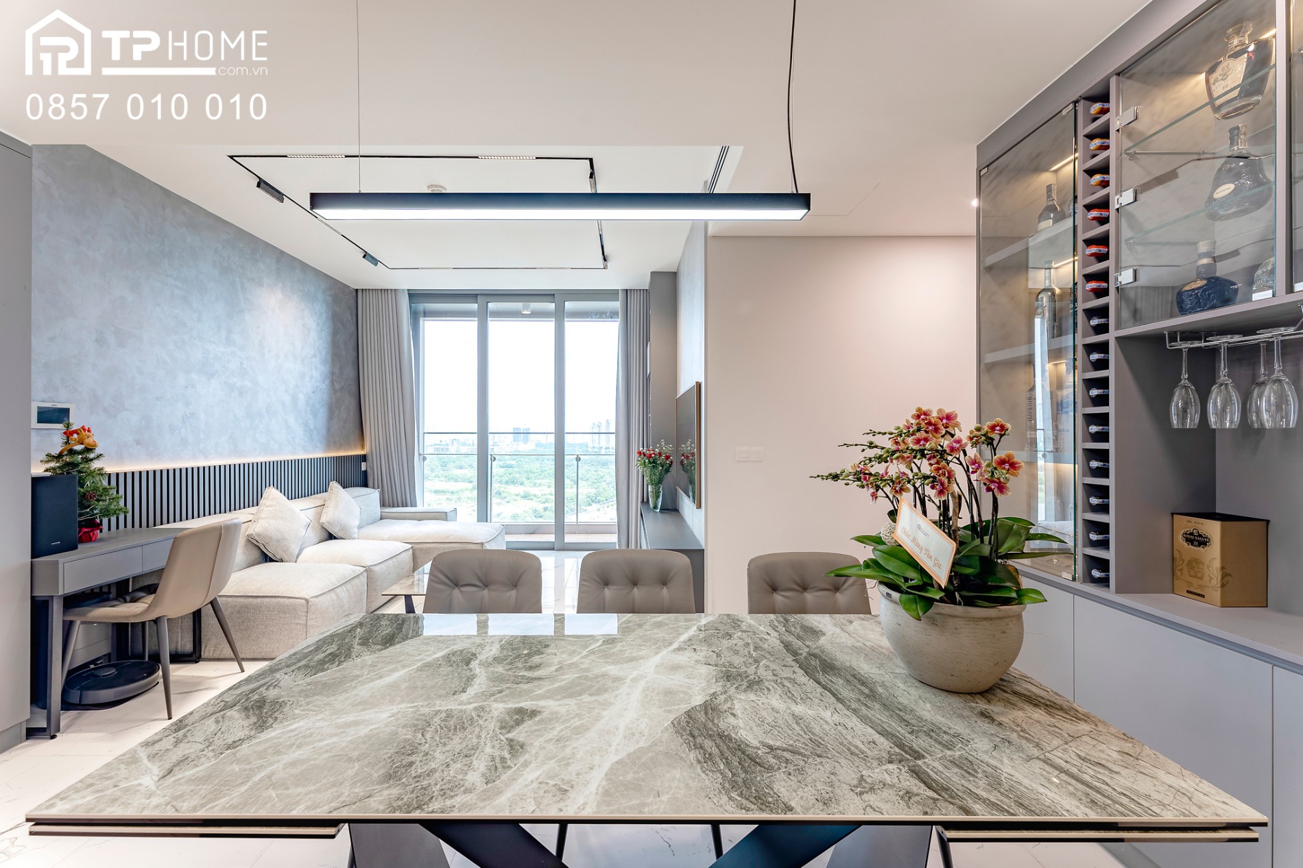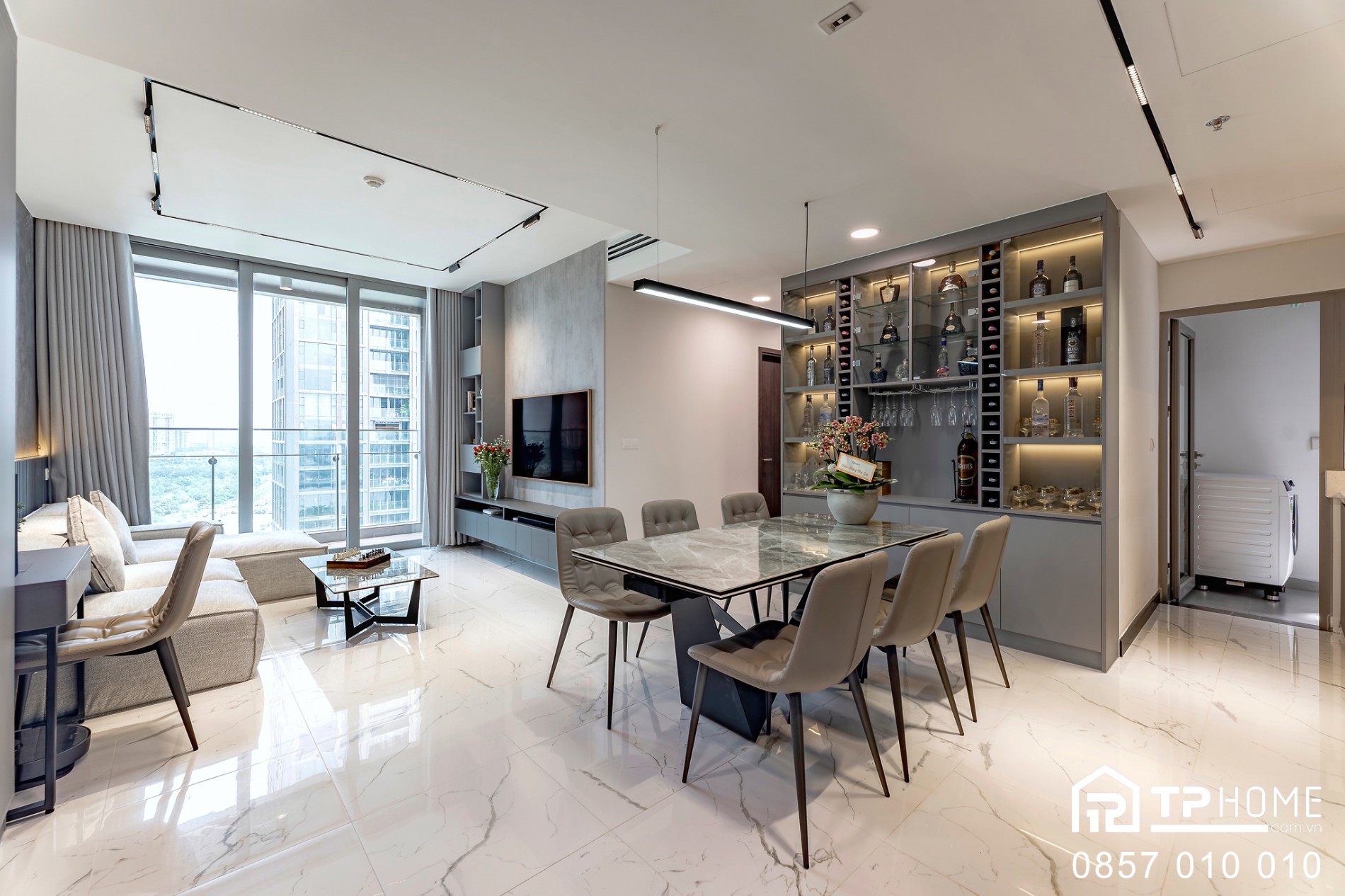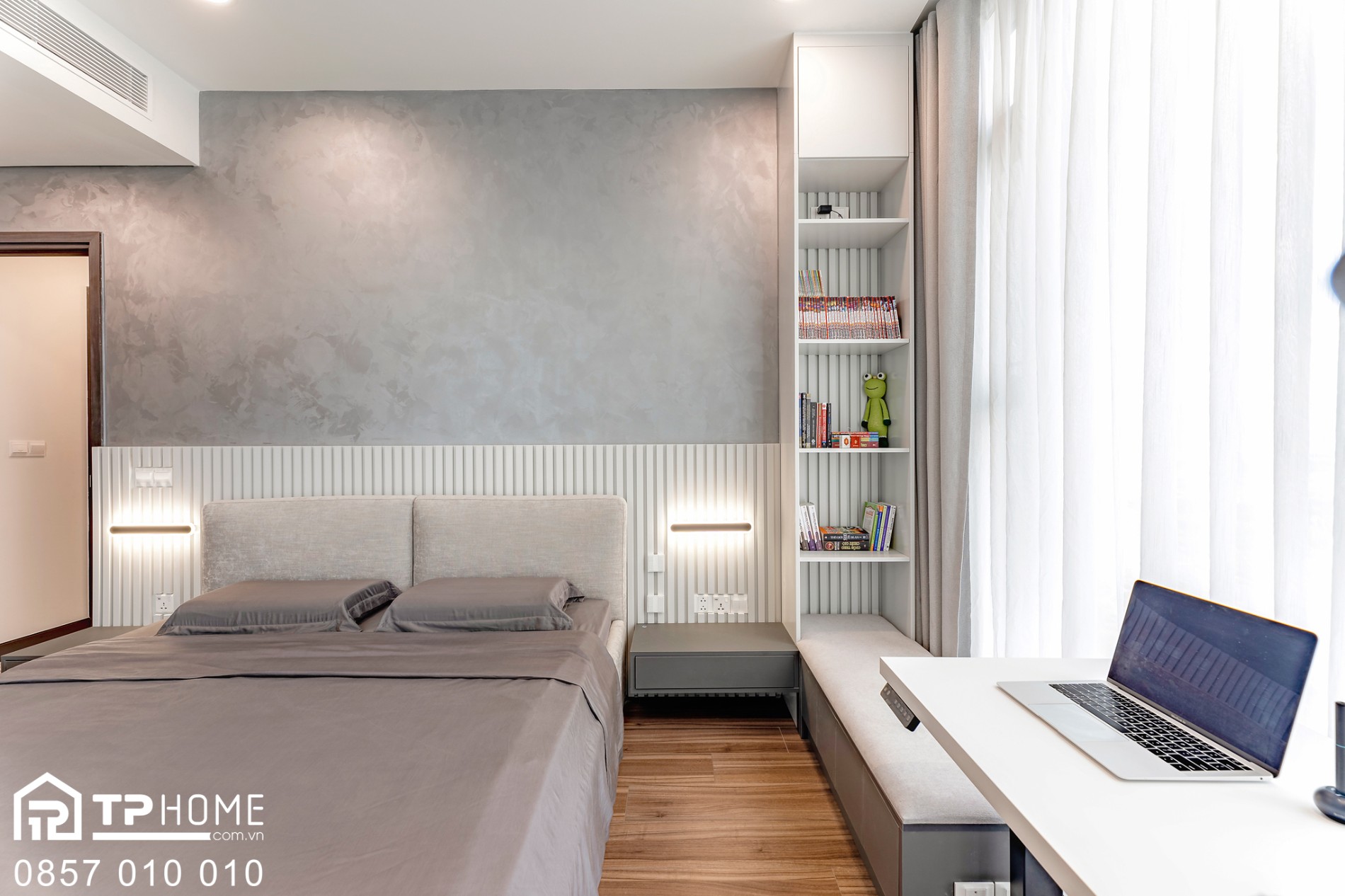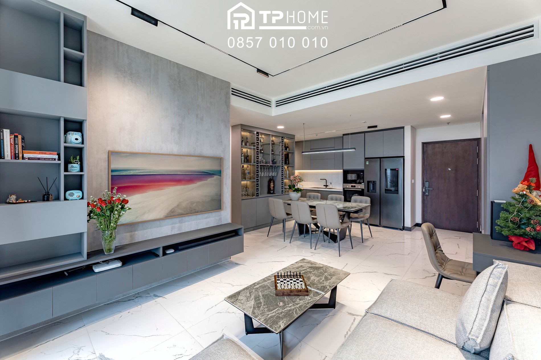 Chủ nhân của căn hộ tiện nghi này là khách hàng trẻ tuổi Việt Kiều Nga về Việt Nam sinh sống và làm việc. Anh đặt ra yêu cầu cho đội ngũ thiết kế Tphome về nội thất trang trọng, tinh tế, nhưng hiện đại và trẻ trung.