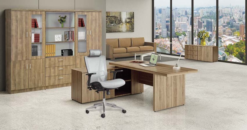 Đối với các vật dụng nội thất trong văn phòng, do thường sử dụng điều hòa, ít tiếp xúc và hứng chịu áp lực thời tiết, lại còn thường xuyên phải thay mới nên không đòi hỏi về độ bền quá cao. Gỗ công nghiệp MFC, MDF, HDF, Gỗ PVC... là một trong những lựa chọn hợp lí nhất đối với người sử dụng, bởi giá thành công quá cao nhưng lại có thiết kế và chất lượng rất hợp lí.