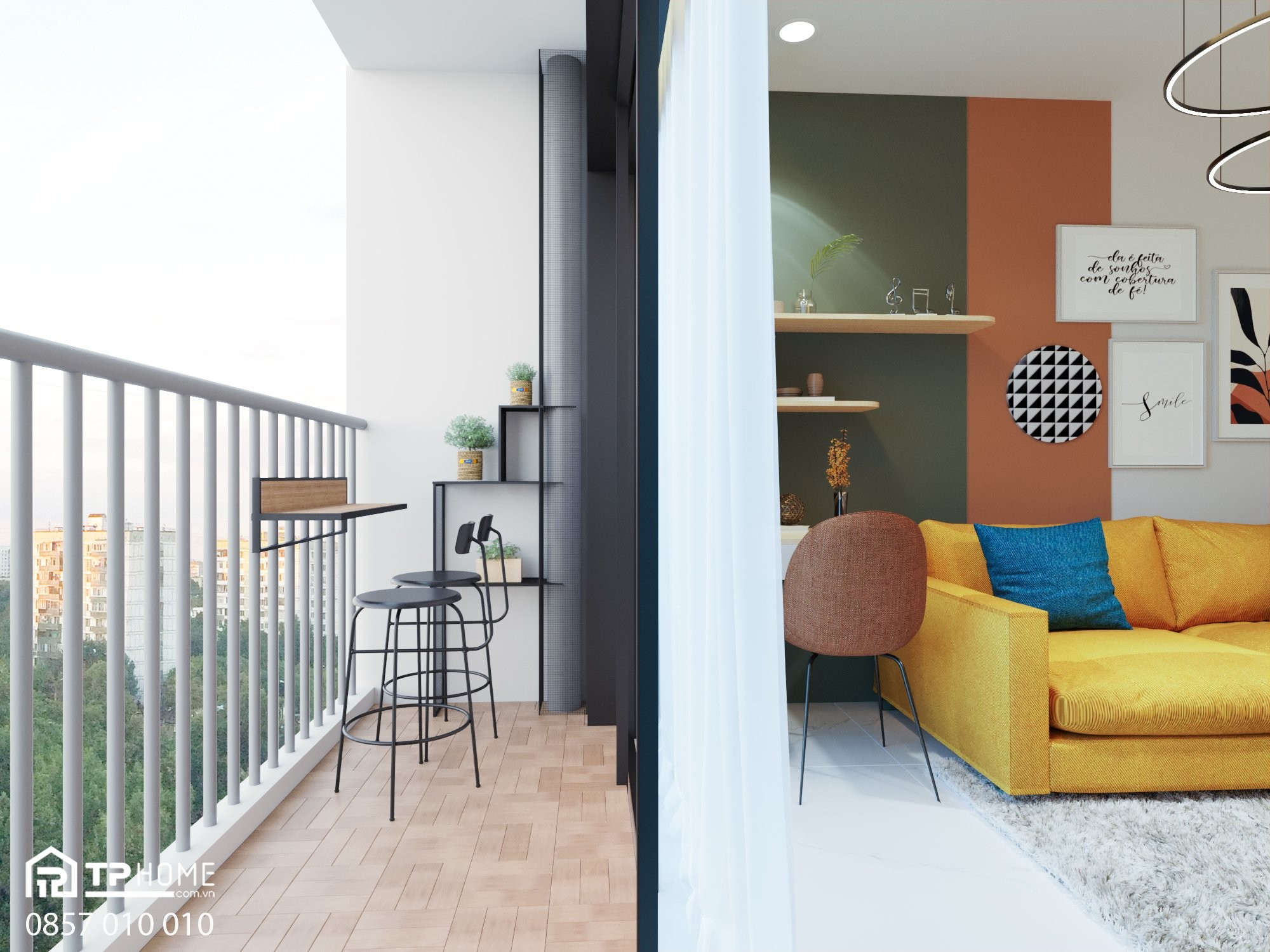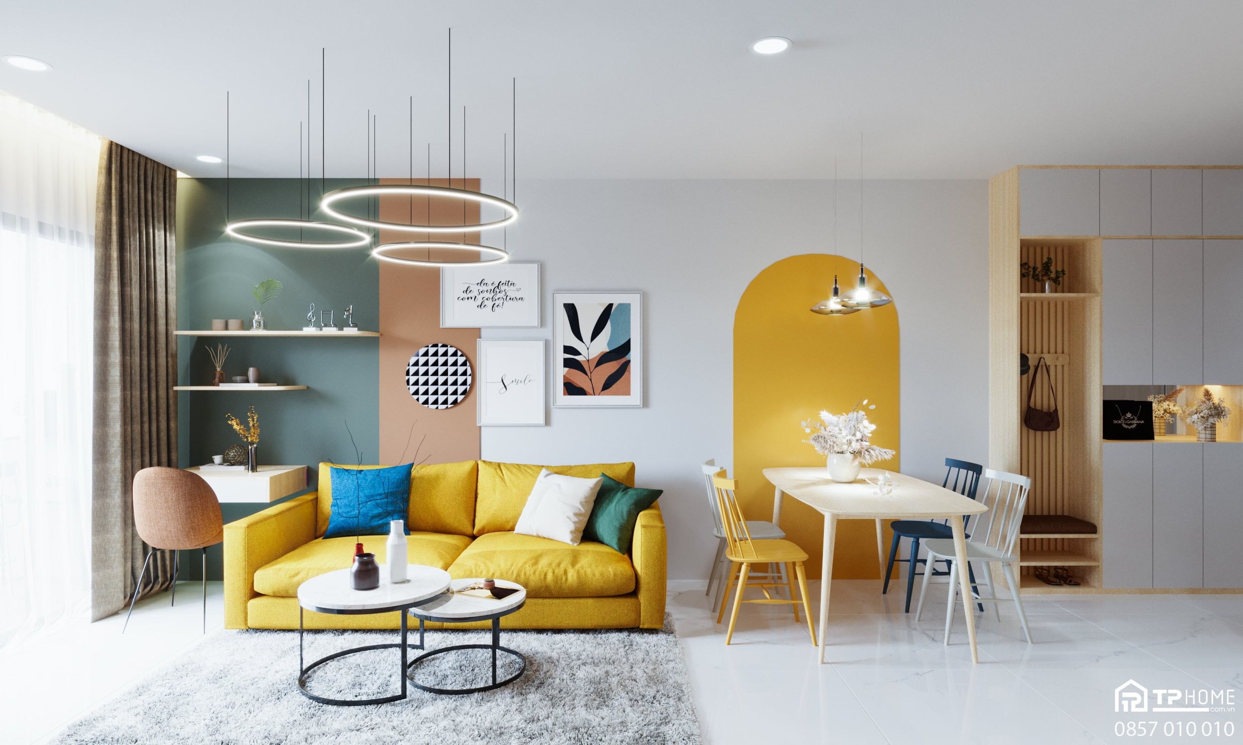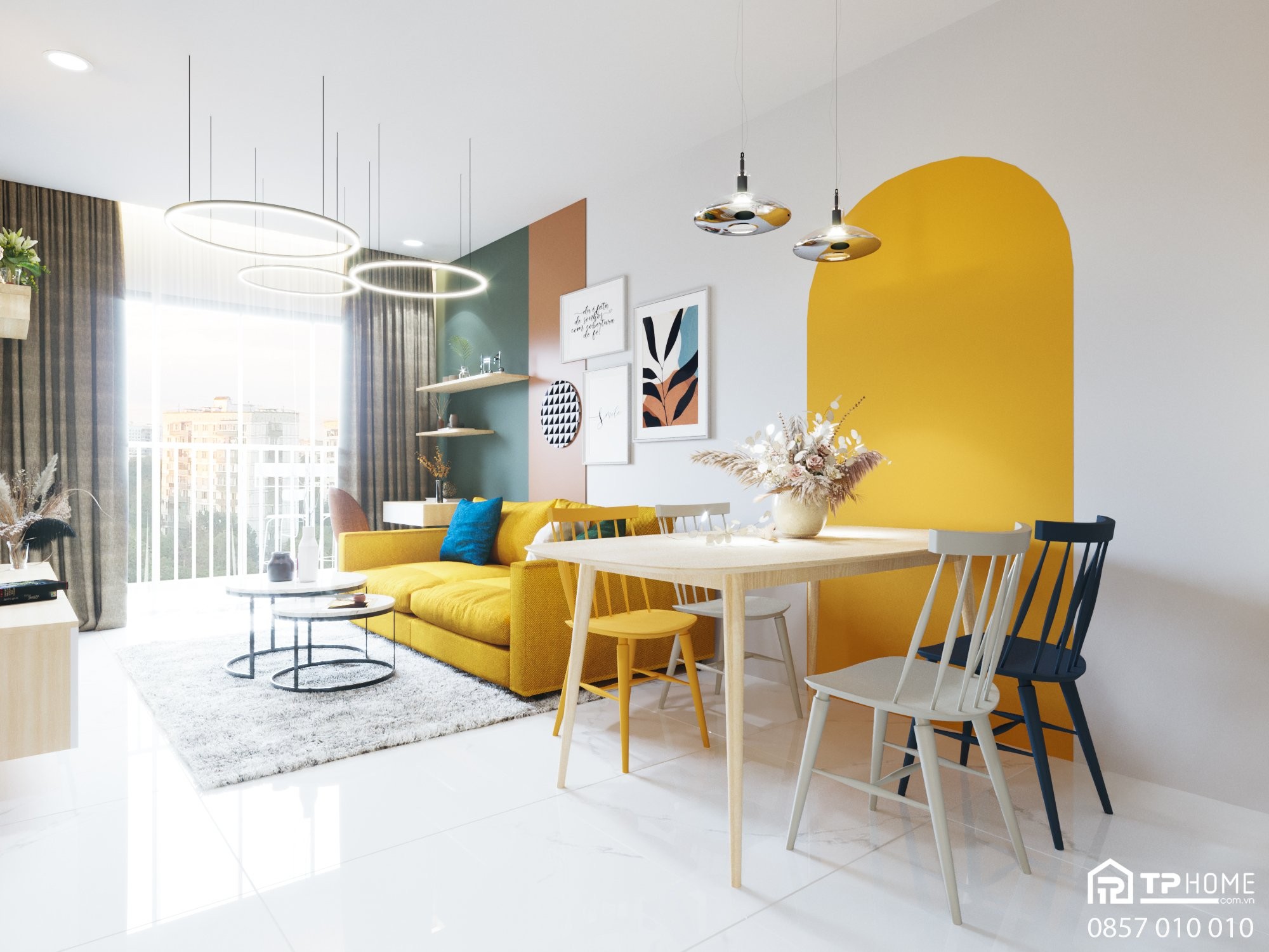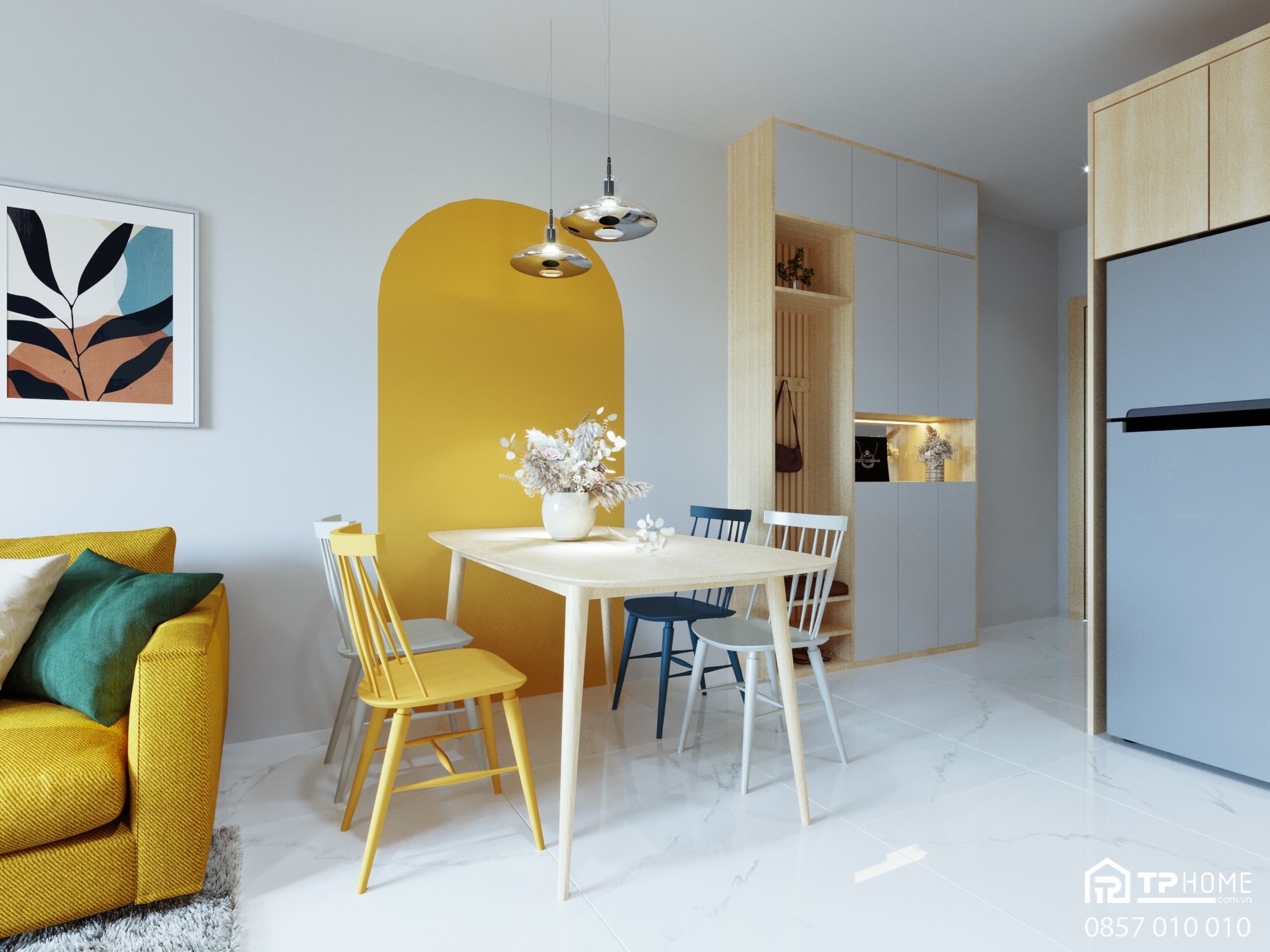 Tư vấn thiết kế và thi công nội thất trọn gói căn hộ 2 phòng ngủ 65m2 tại dự án Lovera Vista Khang Điền, Bình Chánh theo phong cách Color Block
