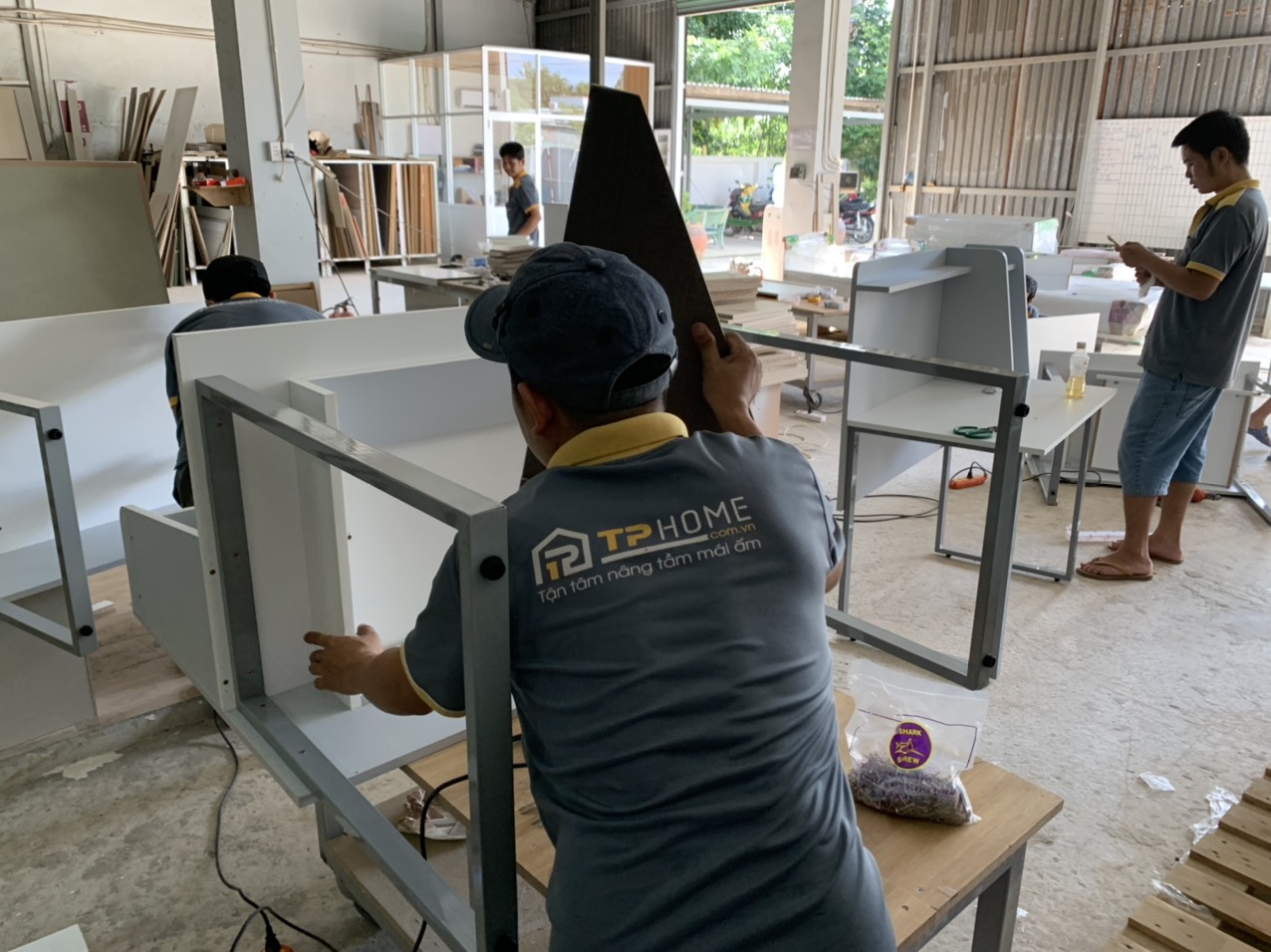 Theo như bản thiết kế hoàn chỉnh đã được ký kết với gia chủ, TPHOME sẽ bắt đầu đặt làm và sản xuất những mẫu nội thất như trong bản thiết kế. Nếu khách hàng muốn kiểm tra chất lượng sản phẩm hay tiến độ sản xuất có đúng cam kết hay không gia chủ có thể liên hệ bất cứ khi nào.