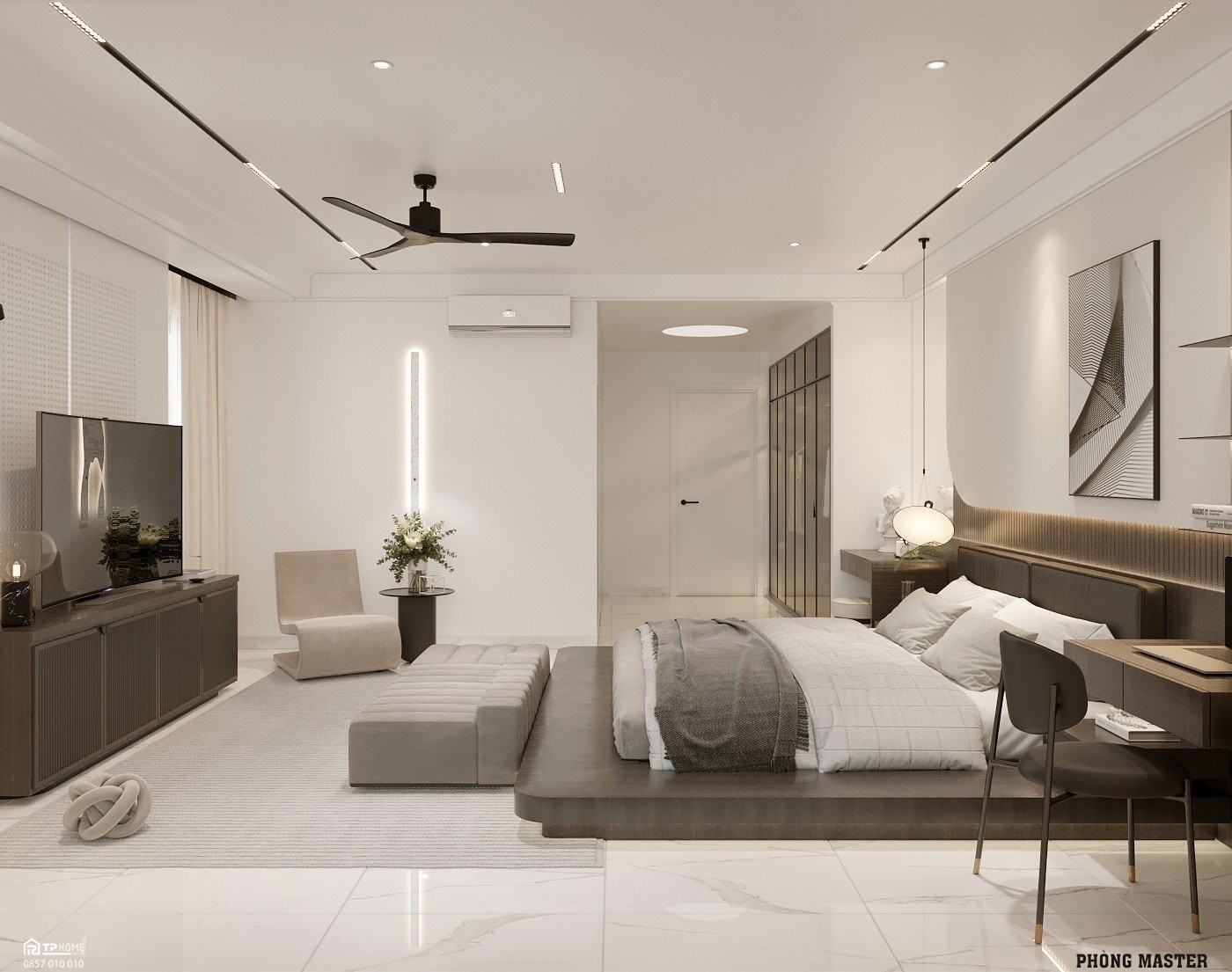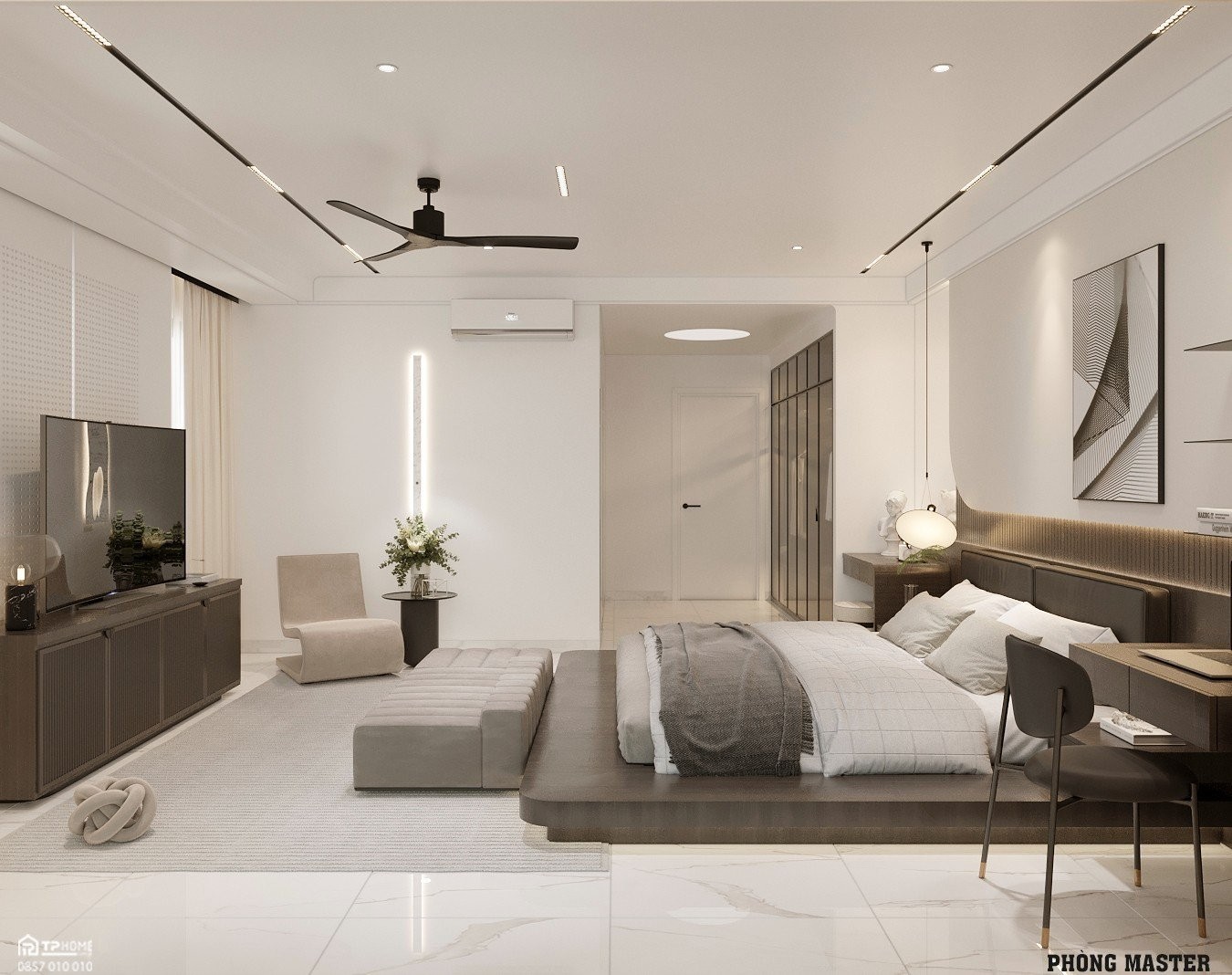 TPhome thiết kế và thi công nhà phố ở Đồng Xoài, Bình Phước. Với diện tích hơn 300m2 (1 trệt, 2 lầu) theo phong cách hiện đại.