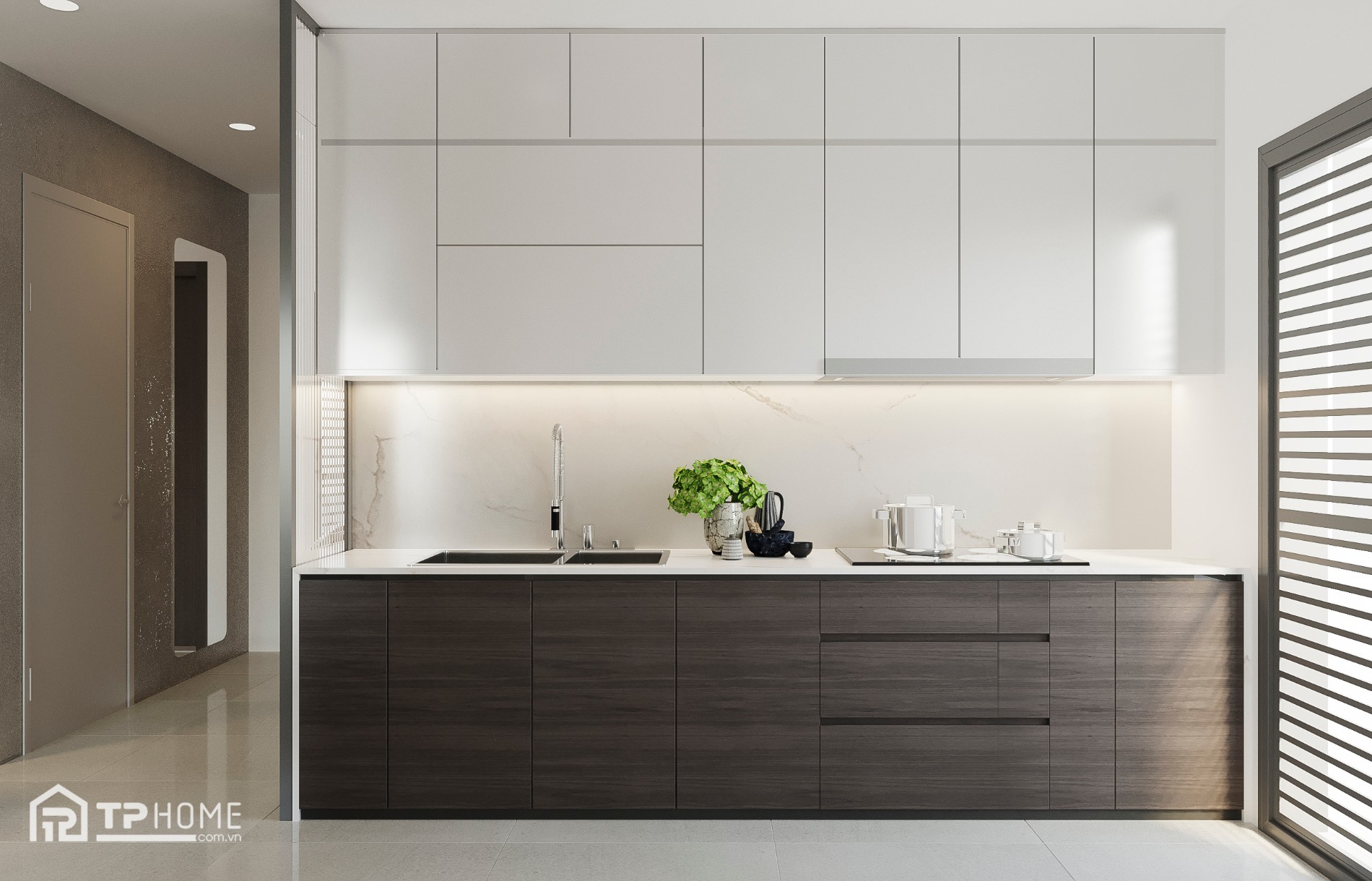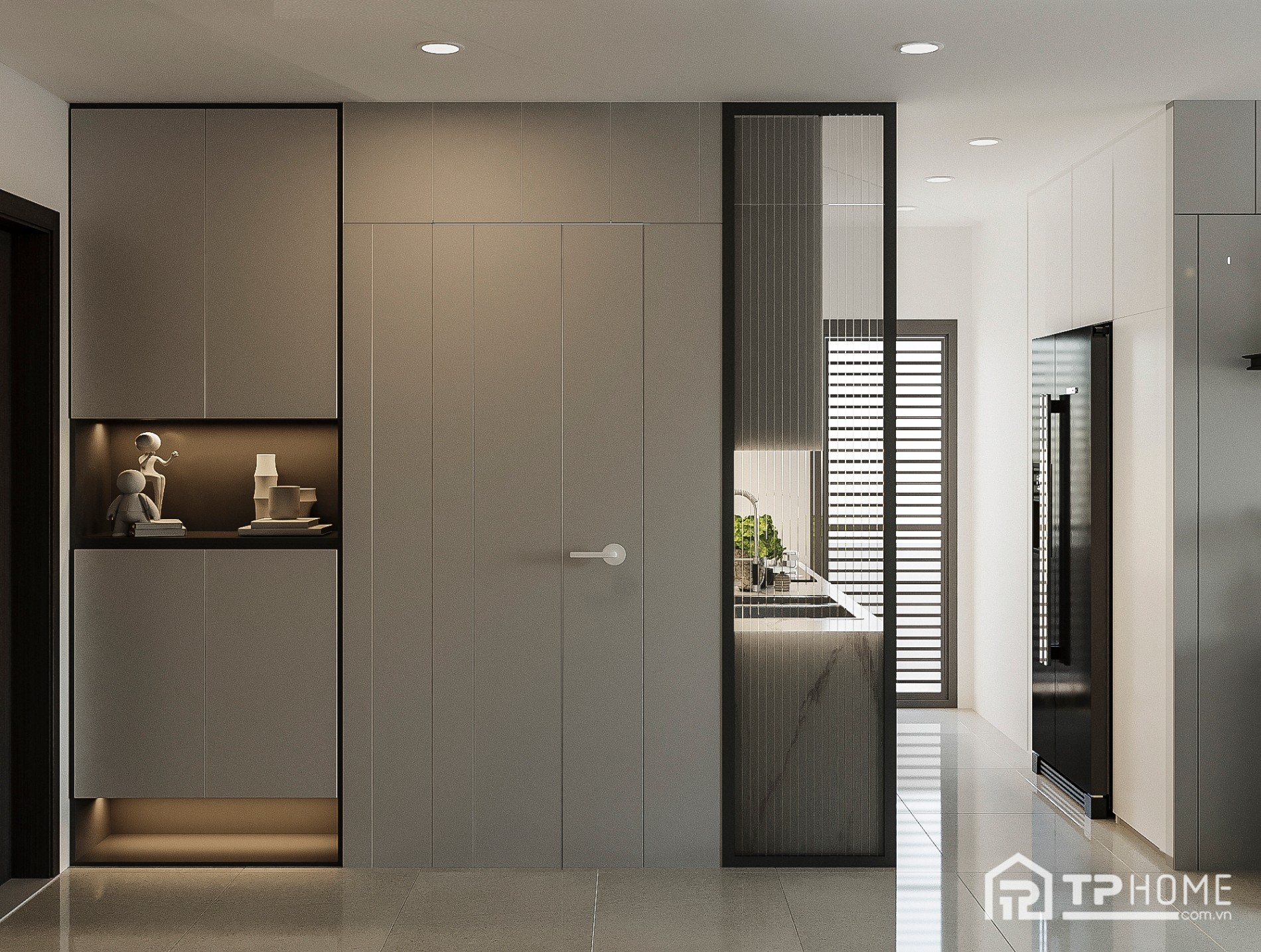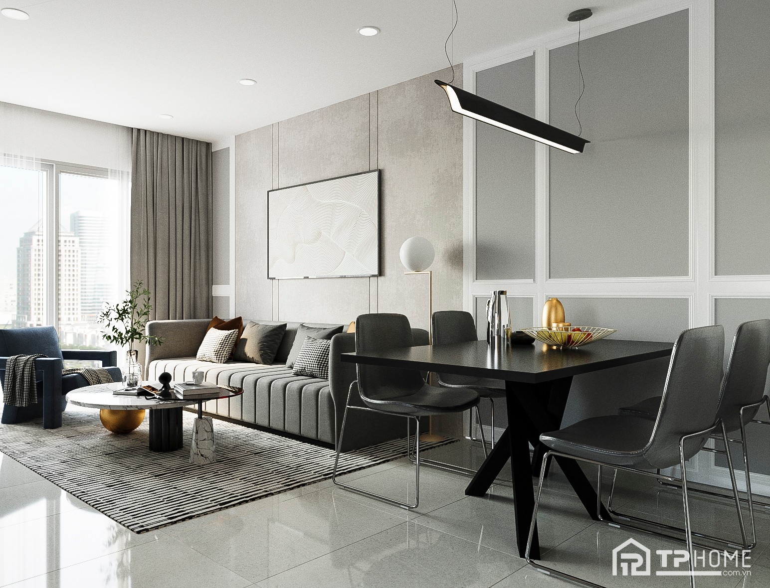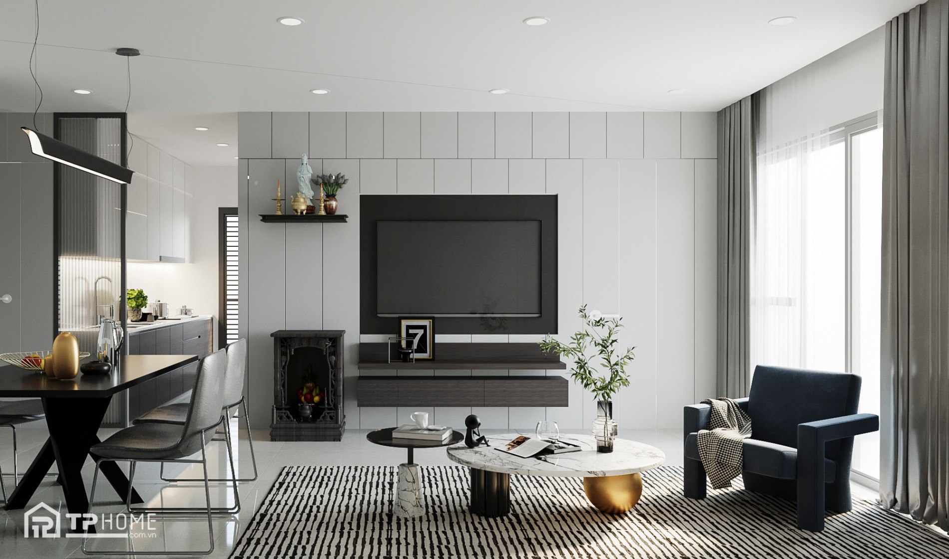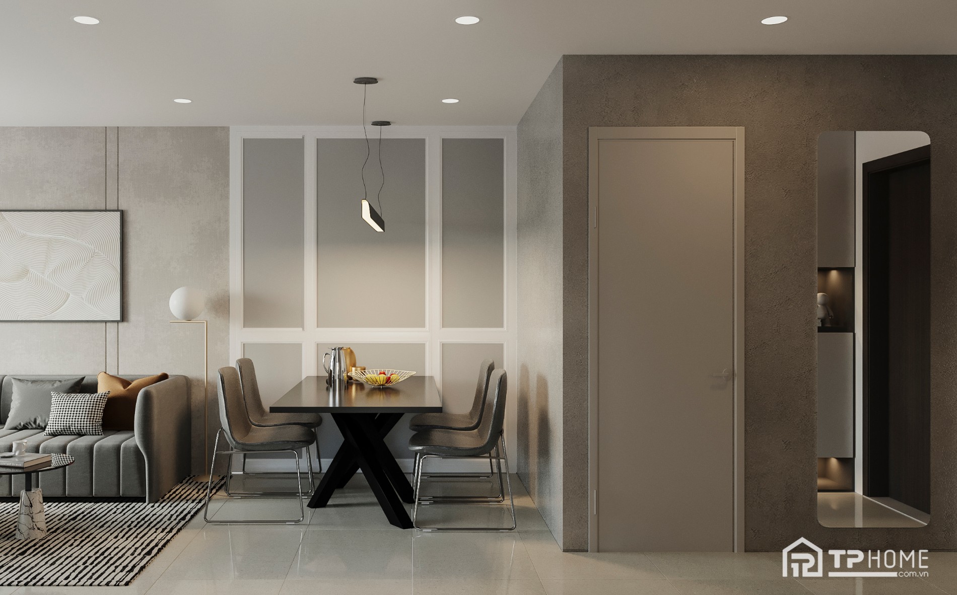 Màu sắc mà các kiết trúc sư TPhome chọn cho dự án lần này là xám và trắng, hai màu sắc thuộc tông lạnh mang nét tính tế sang trọng cho căn hộ, đồng thời cũng tạo nên cảm giác rộng rãi hơn.