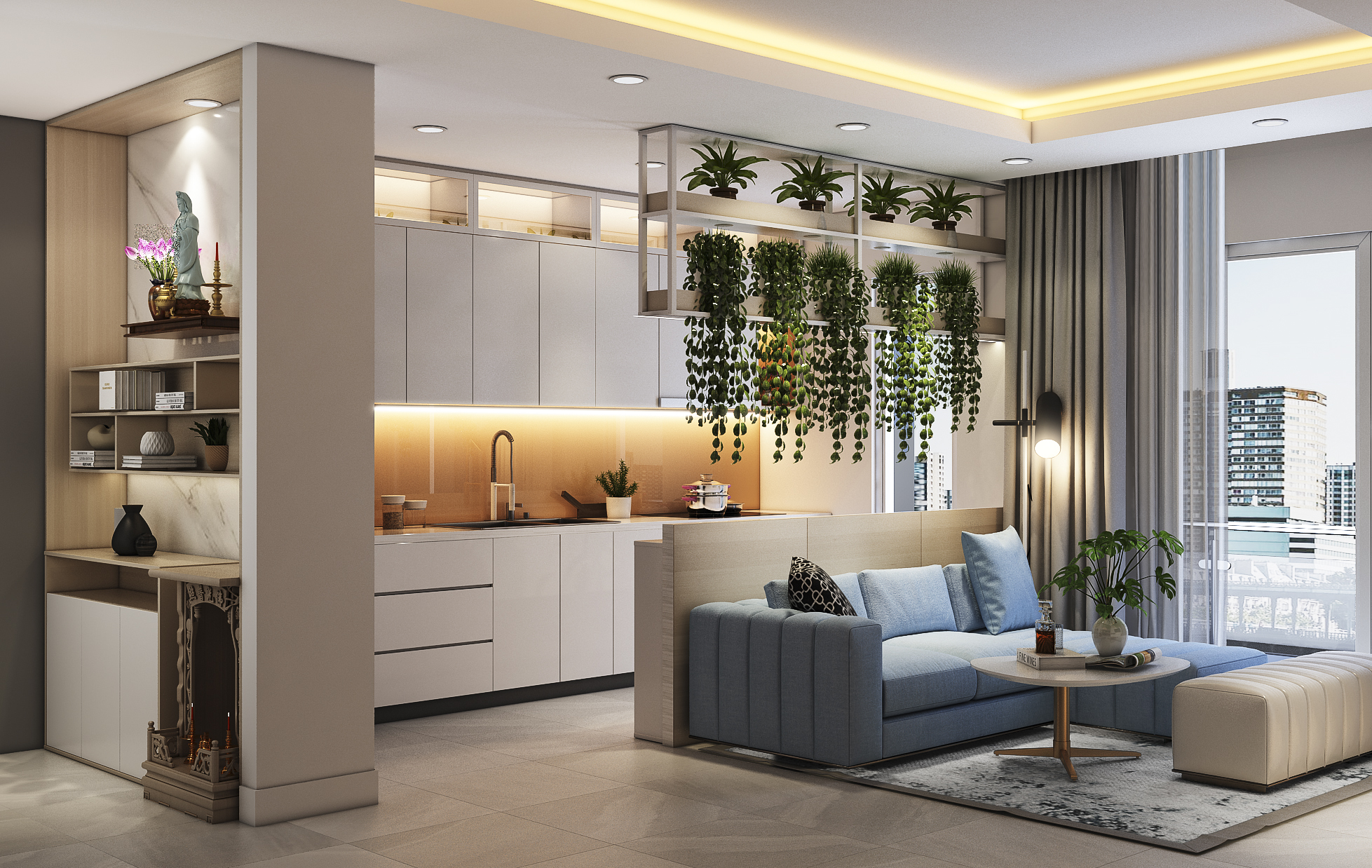 Nội thất phòng khách căn hộ chung cư với thiết kế ấm áp, hiện đại: